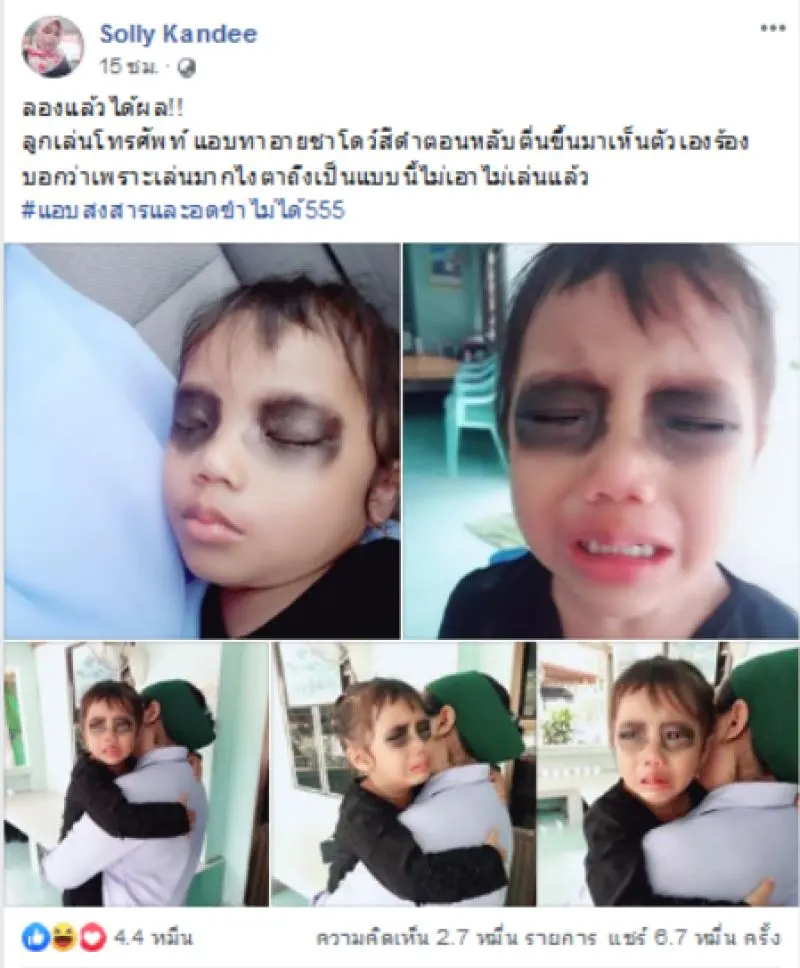 หนูน้อยติดโทรศัพท์หนัก ตื่นมาขอบตาดำ ร้องไห้โฮ