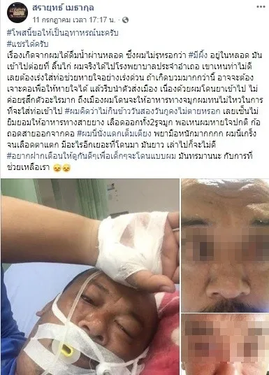 เรียกได้ว่าเป็นเรื่องราวที่เตือนภัยอย่างมาก เมื่อผู้ใช้เฟซบุ๊ก ชื่อ สรายุทธ์ เมธากุล ได้ออกมาเผยแพร่โพสต์ ซึ่งเป็นเรื่องราวของชายรายหนึ่ง ถูกผึ้งต่อยที่ลิ้นไก่ เนื่องจากเขาไม่รู้ว่าผึ้งอยู่ในหลอดจึงดูดเข้าไปเต็มแรง เขาถูกนำส่งโรงพยาบาลอย่างโดยด่วน หมอเห็นท่าไม่ดีจึงใส่ท่อช่วยหายใจ และรีบส่งตัวไปยังโรงพยาบาลในตัวเมือง พออาการดีขึ้น พยาบาลจะต้องถอดเครื่องมือออก มันเจ็บมาก เกร็งจนเลือดตาแตก พยาบาลมือหนักมาก โดยผู้ใช้เฟซบุ๊กดังกล่าว ได้ระบุข้อความเอาไว้ว่า...