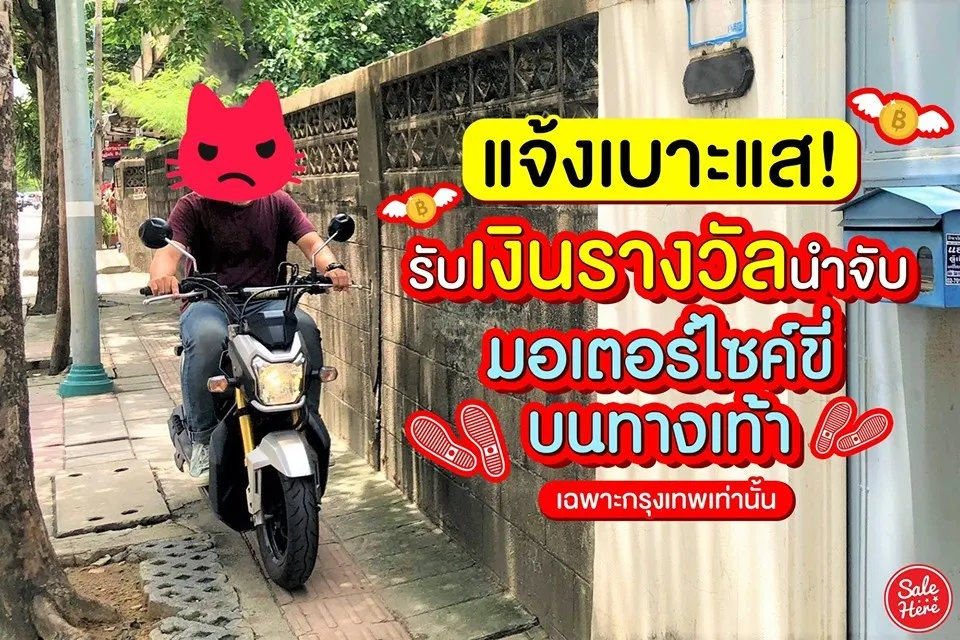 แจ้งจับ มอเตอร์ไซค์ขี่บนทางเท้า มีเงินรางวัลให้นะ!