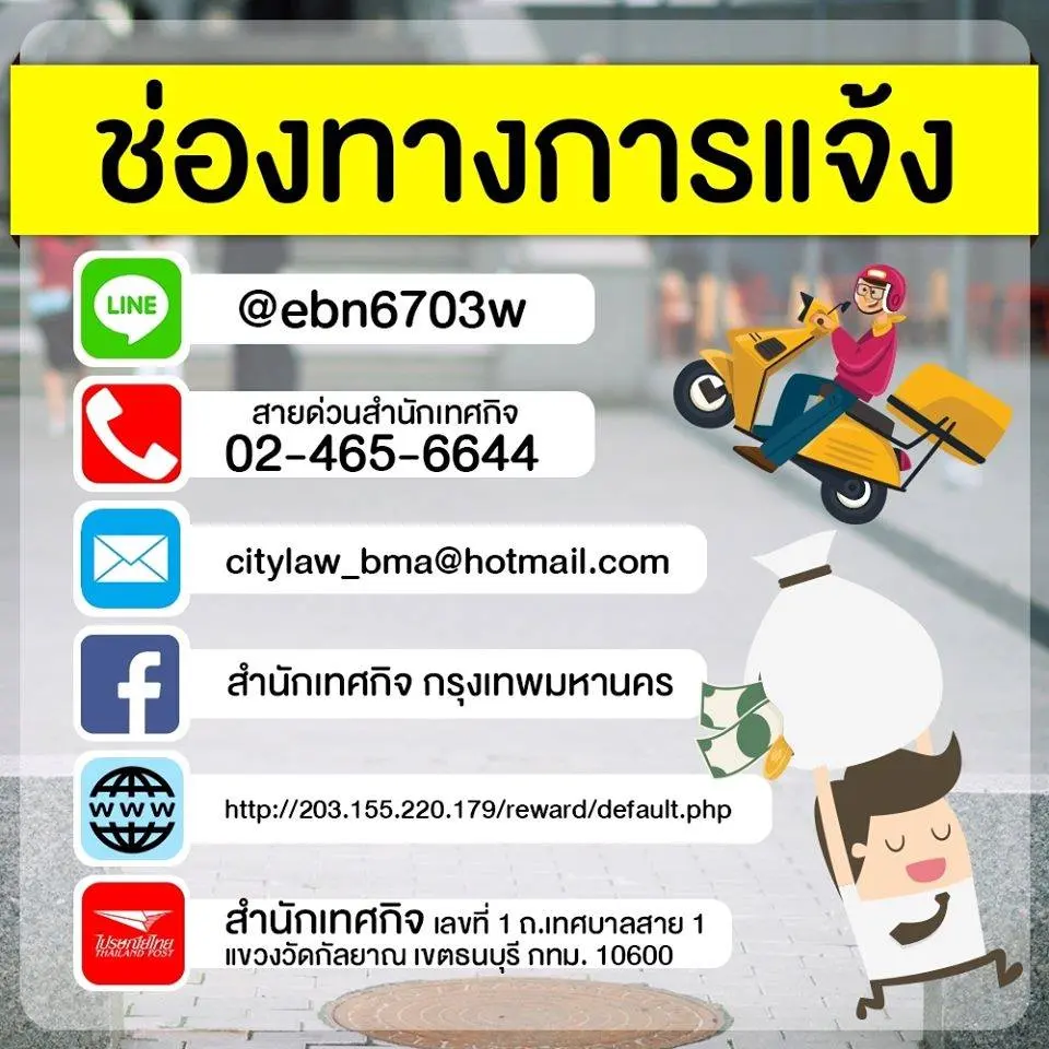กทม.ชวนทำดี #แจ้งเบาะแส คนขี่มอเตอร์ไซค์บนทางเท้า เพียงแค่ถ่ายรูปและส่งรายละเอียด รอเจ้าหน้าที่พิจารณา ก็รับเงินนำจับไปเล๊ยยย เช็คให้ดี! ก่อนแจ้งเบาะแส หากบ้านไหนมีความจำเป็นอาจยกเว้นได้นะ