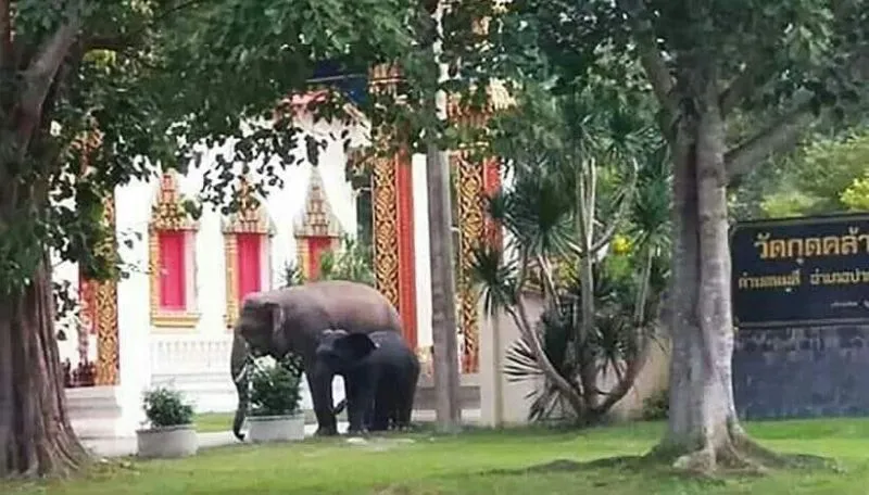 พบช้างป่าขนาดใหญ่ น่าจะชื่อเจ้าแคะ ยืนอยู่ภายในวัดบริเวณหน้าโบสถ์ คู่กับรูปปั้นช้าง ท่าทางสงบ ทำเอาพระเณร และประชาชนที่อยู่ในวัดต้องถอยร่นออกไปให้ไกล แต่ก็ดูช้างป่าไม่มีท่าทีดุร้าย เจ้าหน้าที่จึงไล่ต้อนออกจากวัดเข้าป่า