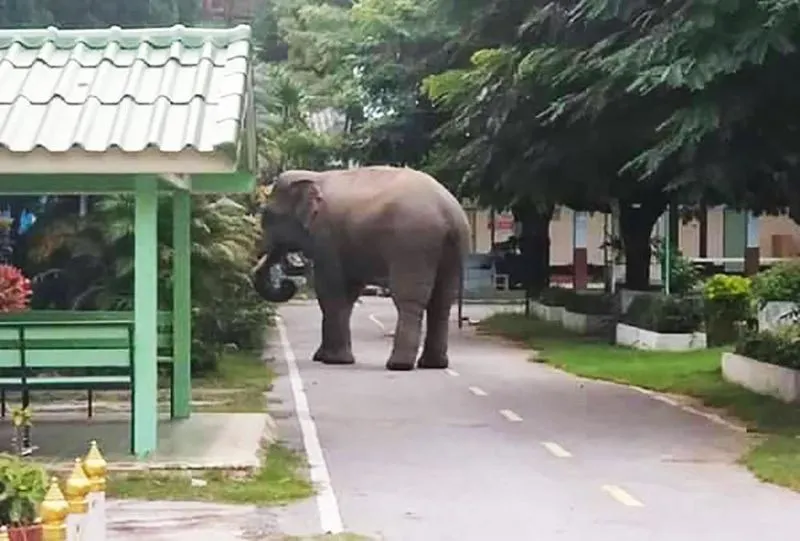 ต่อมาเจ้าหน้าที่ก็ได้รับแจ้งว่า มีช้างป่าออกมาเดินบนถนนธนะรัชต์ บ้านหมูสี และหมู่บ้านเขาวง เจ้าหน้าที่จึงได้รีบไปตรวจสอบเกรงว่าจะเกิดอุบัติเหตุรถวิ่งชนช้างป่าตามที่เกิดขึ้นเมื่อ 2 อาทิตย์ที่ผ่านมา และพบว่าช้างป่าในหลายจุดที่ออกหากินนอกแนวเขตอุทยานฯ และไม่ยอมกลับเข้าป่าในเขต