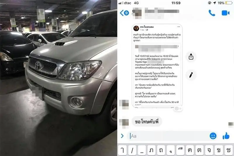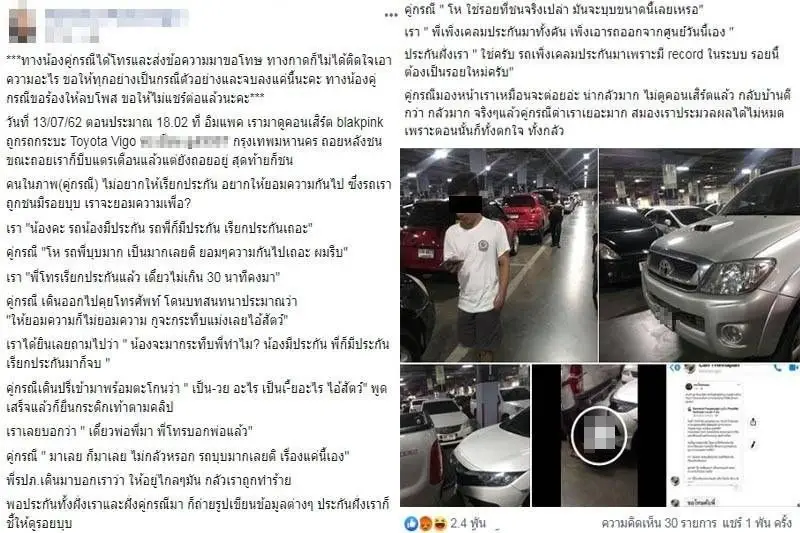 วันที่ 13/07/62 ตอนประมาณ 18.02 ที่ อิมแพค เรามาดูคอนเสิร์ต blakpink ถูกรถกระบะ Toyota Vigo ถอยหลังชน ขณะถอยเราก็บีบแตรเตือนแล้วแต่ยังถอยอยู่ สุดท้ายก็ชน" โดยเจ้าของโพสต์เผยต่ออีกว่า รถตนถูกชนมีรอยบุบ ทางคู่กรณีไม่อยากให้เรียกประกัน อยากให้ยอมความกันไปเพราะรีบ ซึ่งทางคู่หนุ่มกรณีเจ้าของรถกระบะกลับพูดกวน และคำหยาบใส่ "เป็น-วย อะไร เป็นเ-ี้ยอะไร ไอ้-ัตว์" พูดเสร็จแล้วก็ยืนกระดิกเท้า อีกทั้งเมื่อเจ้าของโพสต์บอกว่าเดี๋ยวพ่อมาก็กลับถูกตอบกลับว่า "มาเลย ก็มาเลย ไม่กลัวหรอก รถบุบมากเลยดิ เรื่องแค่นี้เอง"