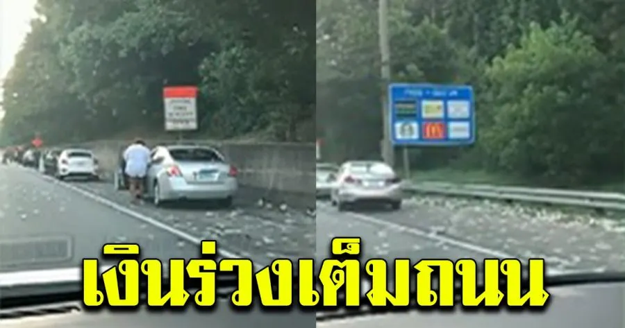 รถบรรทุกเงินสดลืมปิดประตูหลัง เงินร่วง ปลิวเต็มถนน รีบจอดรถเก็บเงิน