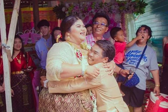 เจ้าบ่าวกล่าวอีกว่า เธอน่ารักกับผมเสมอเธอดูแลผมดีมาตลอด ใครจะพูดว่าแฟนผมอ้วนยังไงผมไม่สนใจเพราะคนอ้วนคนนี้นี่แหละที่ทำให้ผมมีความสุข