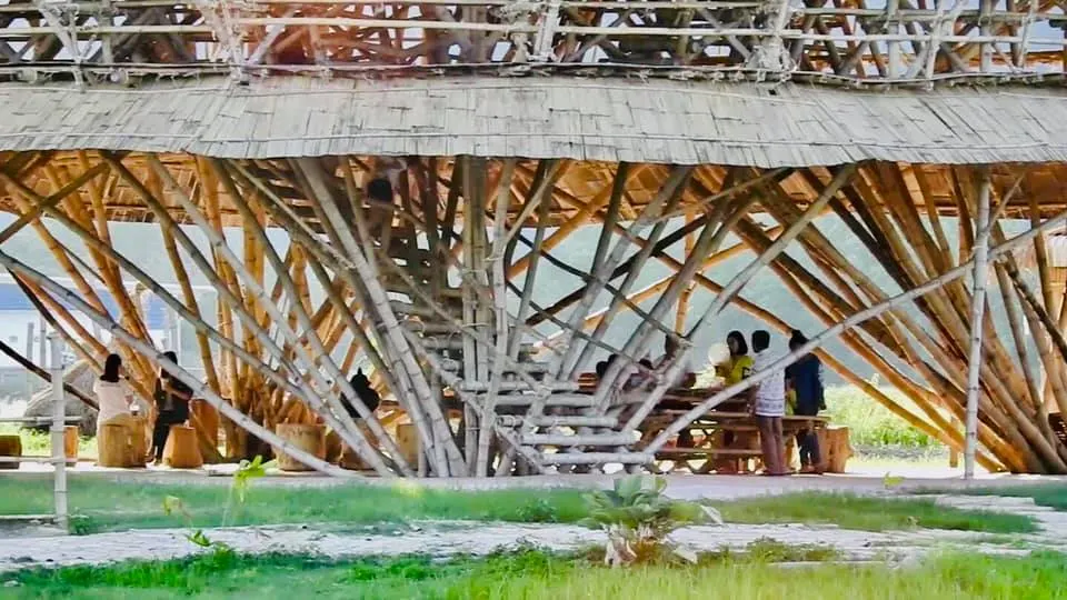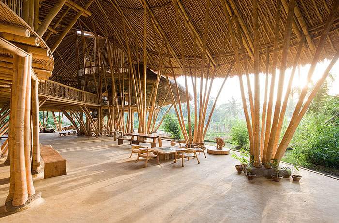 รูปที่ผมส่งมาให้ เป็นรูปที่ 4 ท้ายสุดนั้นเป็นอาคารโรงเรียนไม้ไผ่ที่มีชื่อเสียงมาก ที่บาหลี (The Bamboo School) โดยมีวิศวกรโครงสร้างจากเยอรมันมาออกแบบโครงสร้างให้ เขายังทำแค่ 2 ชั้น