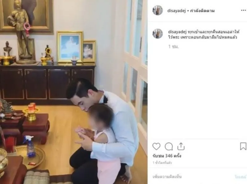 อย่างไรก็ตามพบว่า หลัง เซลิน่า โพสต์ดังกล่าว ไฮโซโอ๊ค สามี ก็โพสต์ภาพลูกรัวๆ ก่อนจะโพสต์คลิปล่าสุดพาลูกสาวไหว้พระในห้องพระ พร้อมแคปชั่นว่า “ทุกเช้าและทุกคืนสอนเอล่าให้ไหว้พระ เพราะตอนกลับมาลืมไปหมดแล้ว”