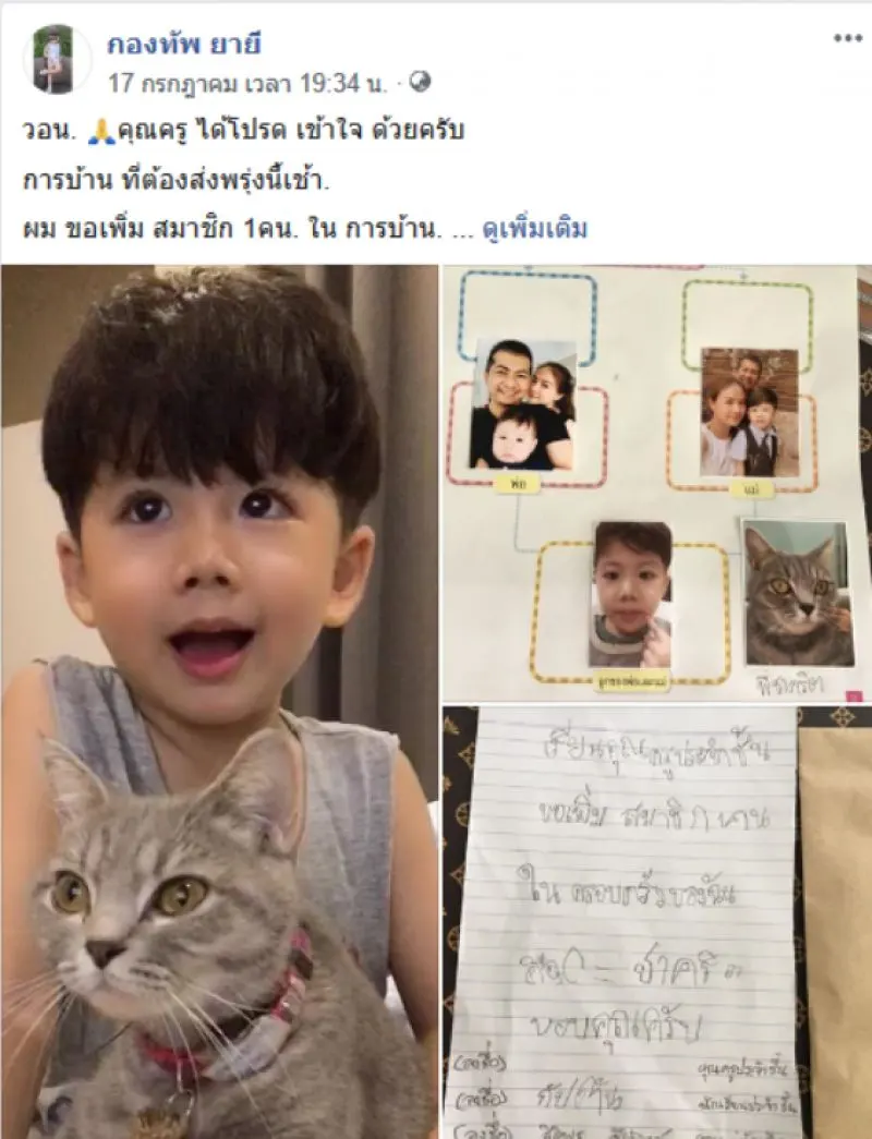 20 กรกฎาคม 2562 ผู้สื่อข่าวรายงานว่า ผู้ใช้เพจเฟซบุ๊กชื่อ กองทัพ ยายี ได้โพสความน่ารักของหนูน้อยที่ทำการบ้านส่งครู โดยระบุว่า