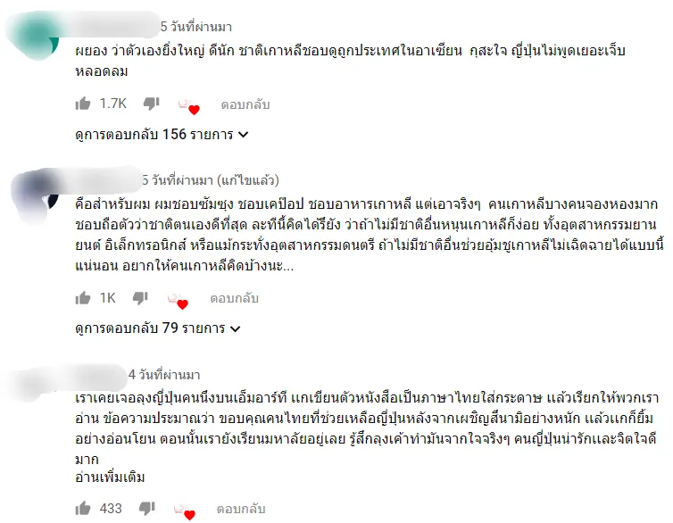 ด้านคอมเม้นต์เดือด บ้างก็ว่า ...."ผยอง ว่าตัวเองยิ่งใหญ่ ดีนัก ชาติเกาหลีชอบดูถูกประเทศในอาเซียน กุสะใจ ญี่ปุ่นไม่พูดเยอะเจ็บหลอดลม...