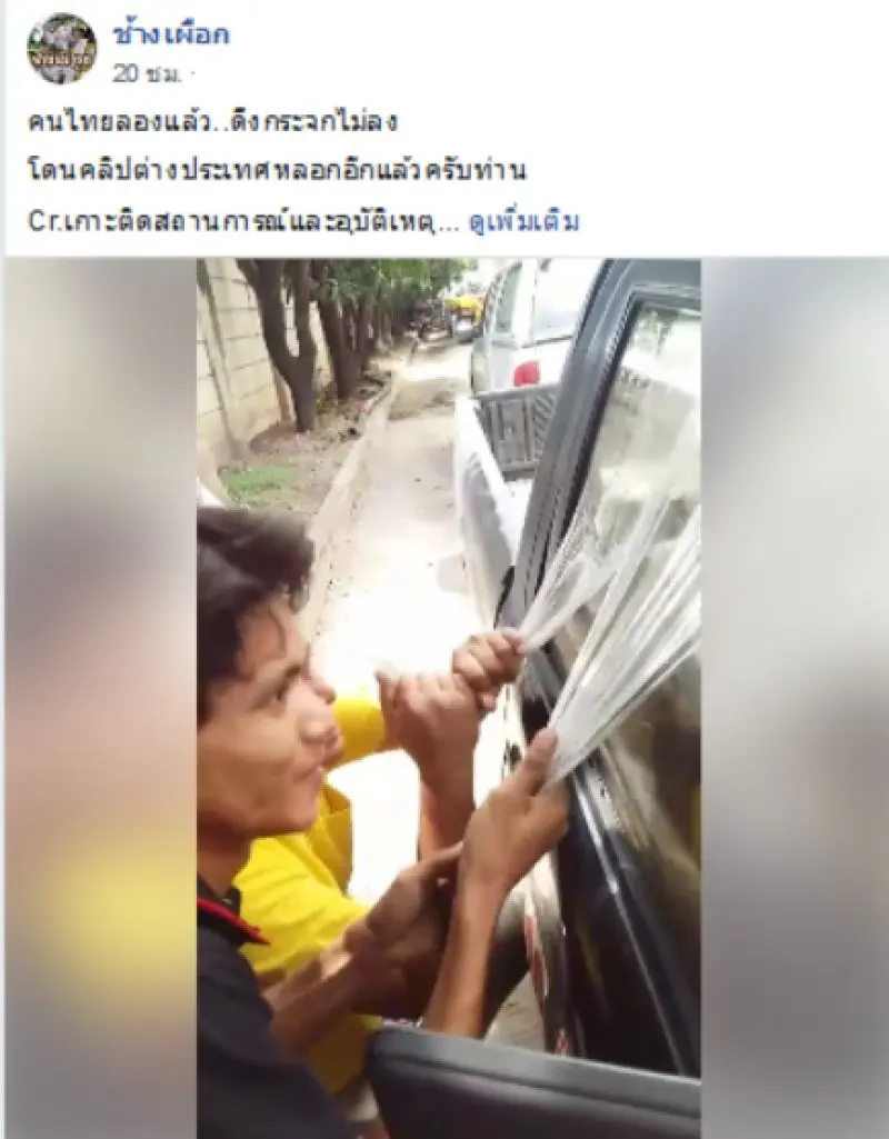 คนไทยลองแล้ว..ดึงกระจกไม่ลง