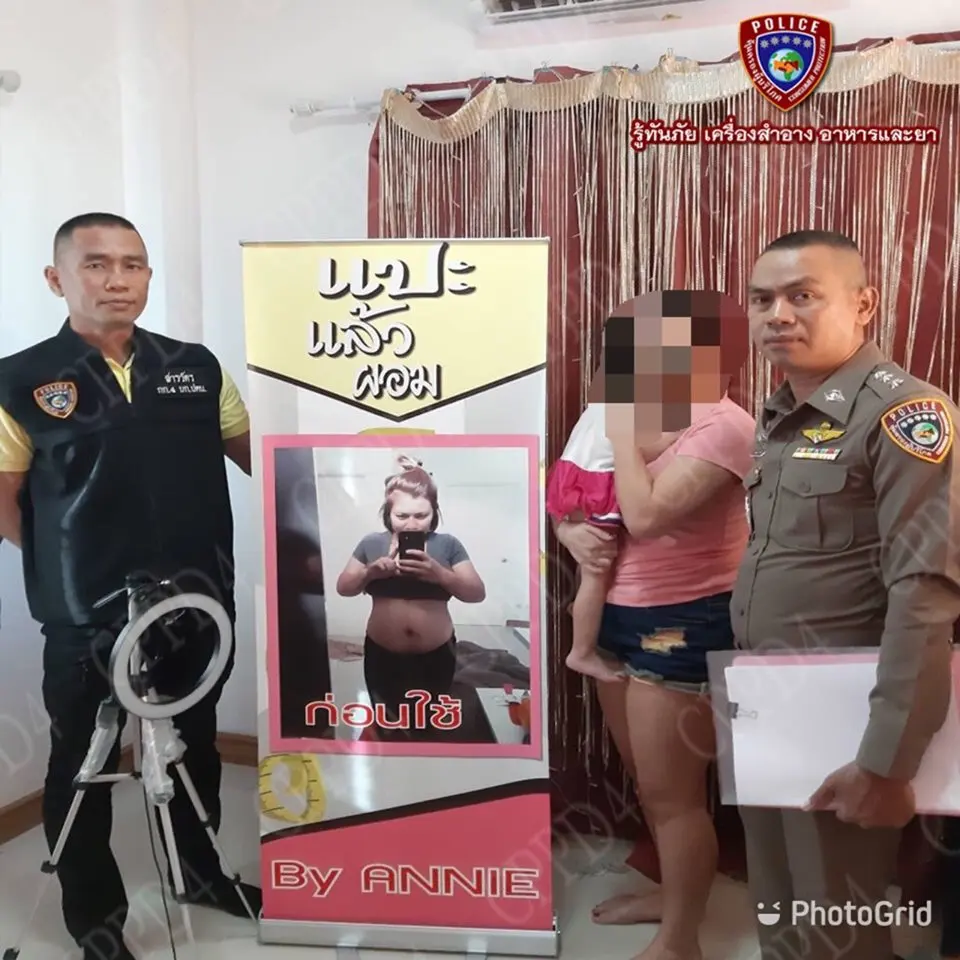 ต่อมาเมื่อวันที่ 18 กรกฎาคม 2562 เจ้าหน้าที่ตำรวจกองบังคับการปราบปรามการกระทำความผิดเกี่ยวกับการคุ้มครองผู้บริโภคได้ร่วมกับเจ้าหน้าที่สำนักงานคณะกรรมการอาหารและยา ตรวจสอบบ้านเลขที่ 22/65 หมู่ที่ 2 ตำบลกระแชง อำเภอสามโคก จังหวัดปทุมธานี ซึ่งเป็นสถานที่จำหน่ายผลิตภัณฑ์แผ่นแปะสะดือเผาผลาญไขมันและผลิตภัณฑ์สบู่นมเด้ง ตรวจสอบพบ ผลิตภัณฑ์แผ่นแปะสะดือเผาผลาญไขมัน จำนวน 12,000 แผ่น และสบู่นมเด้ง จำนวน 130 ก้อน จึงได้ตรวจยึดผลิตภัณฑ์ดังกล่าวนำส่งร้อยเวรเพื่อดำเนินคดีตามกฎหมายต่อไป
