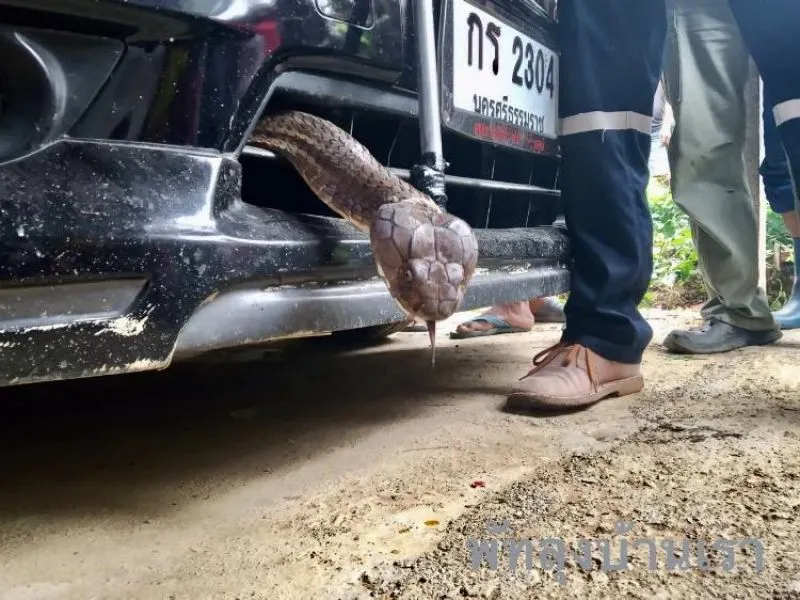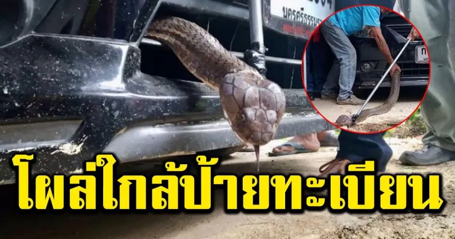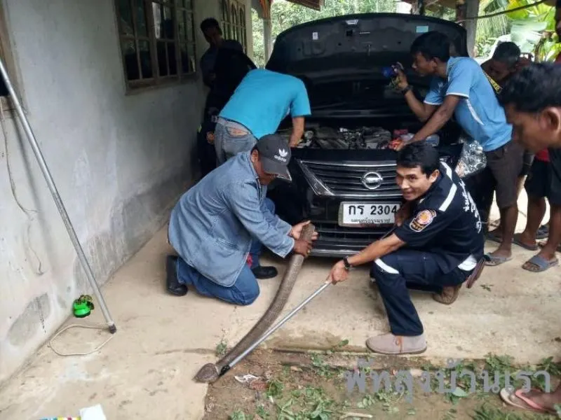 จงอางยักษ์แอบเลื้อยเข้าในห้องเครื่องรถเก๋ง