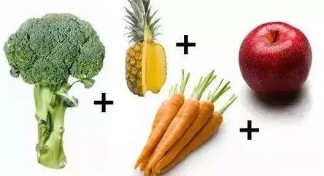 ส่วนผสม : ผักบล็อกโคลี่ 15 กรัม, แครอท 50 กรัม, สับปะรด 200 กรัม,แอปเปิ้ล 1 ลูก , ผลไม้จำพวกเปลือกแข็ง มีเมล็ดด้านใน 1 ช้อนโต๊ะ, น้ำต้มสุก 400 มล.
