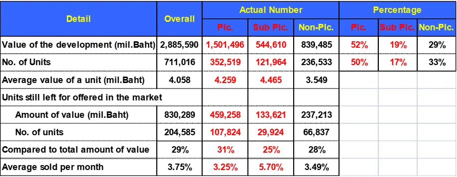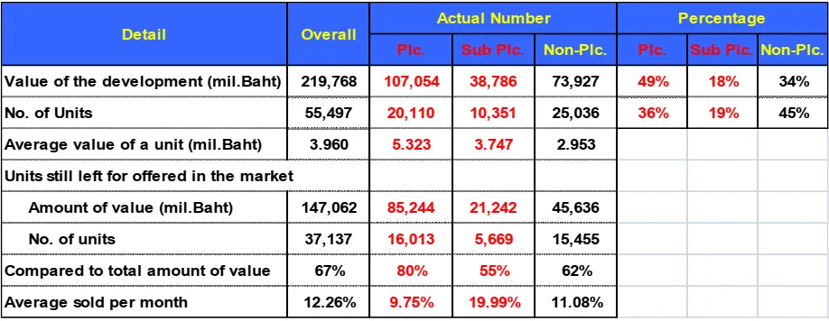 โดยจะพบว่า บริษัทในเครือมหาชนขายได้ 19.99% ต่อเดือน บริษัทมหาชนได้ 9.75% ส่วนของบริษัททั่วไปขายได้สูงถึงประมาณเดือนละ 11.08% ต่อเดือน ซึ่งถือว่ายอดขายของบริษัทมหาชน และบริษัทในเครือจะขายได้ดีกว่าบริษัทพัฒนาที่ดินทั่วไป