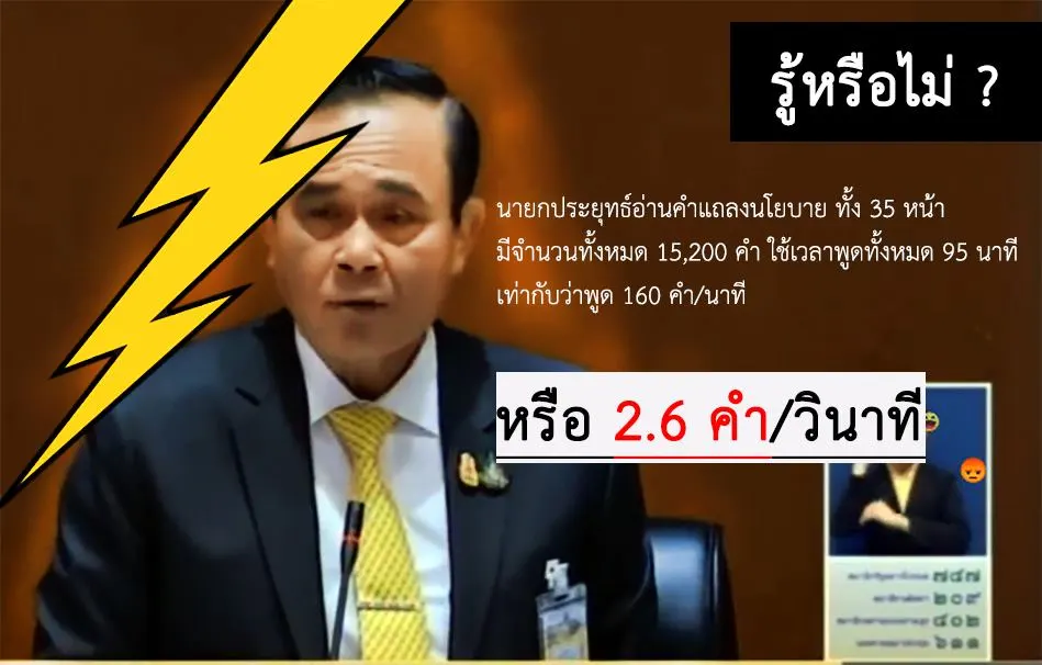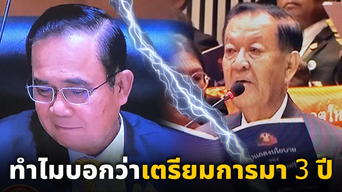 "แต่ประโยคสุดท้ายนี่ผมอยากจะถามท่านนายกฯ ว่าจำได้ไหม และท่านหมายความว่าอย่างไร ท่านบอกว่า 'อย่าใครคิดสู้นะ ถึงสู้ก็สู้ไม่ได้ ผมเตรียมการเรื่องนี้มา 3 ปีกว่า' ประโยคนี้สำคัญและผมข้องใจจนบัดนี้ ขอถามว่า การเตรียมการมา 3 ปีกว่าหมายความว่าอย่างไร นับย้อนหลังไปว่า 2556 2555 2554 หมายความว่าท่านเตรียมการตั้งแต่ยังไม่มีเหตุการณ์เกิดขึ้น ไม่น่าเชื่อว่าจะได้ยินคำนี้ และถ้าท่านปฏิเสธ ผมก็จะพูดต่อ ท่านได้เตรียมการอย่างละเอียดมากด้วย"
