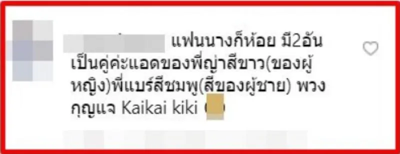 โดยแฟนคลับท่านนี้ ได้คอมเมนต์ไว้ว่า "แฟนนางก็ห้อย มี 2 อันเป็นคู่ค่ะ แอดของพี่ญ่าสีขาว (ของผู้หญิง) พี่แบร์สีชมพู (สีของผู้ชาย) พวงกุญแจ Kaikai kiki"