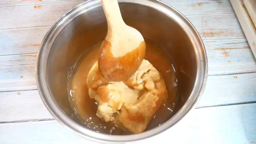1.ทำน้ำมะขามเปียกก่อน โดยนำมะขามผสมกับน้ำอุ่น แช่ทิ้งไว้สักครู่ หลังจากนั้นให้บีบคั้นจนกว่าน้ำมะขามจะข้น และนำไปกรอง