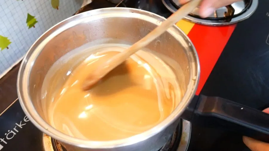 3.นำขึ้นตั้งไฟสักครู่ พอให้เดือดที่ขอบหม้อแล้วปิดไป