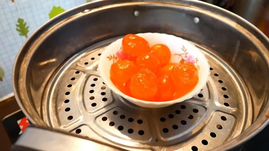 4.นำไข่ไปนึ่งประมาณ 5 นาที ให้สุกพอประมาณ