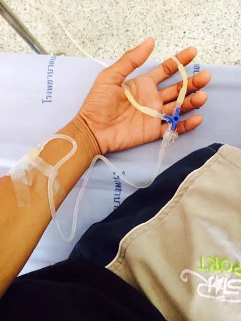 หลังจากหมอตรวจเสร็จก็ให้นอนโรงพยาบาลเพื่อให้ยาฆ่าเชื้อครับ ต้องนอนโรงพยาบาล 5วัน หมดน้ำเกลือ 8กระปุก ยาฆ่าเชื้อ 5กระปุกครับ หลังจากได้ยาวันแรกอาการบวมเริ่มลดลง เท้าเริ่มมีรอยย่นให้เห็น หลังจากนอนมา 5วัน หมอเลยให้กลับบ้านมาล้างแผลเอง รพสต.