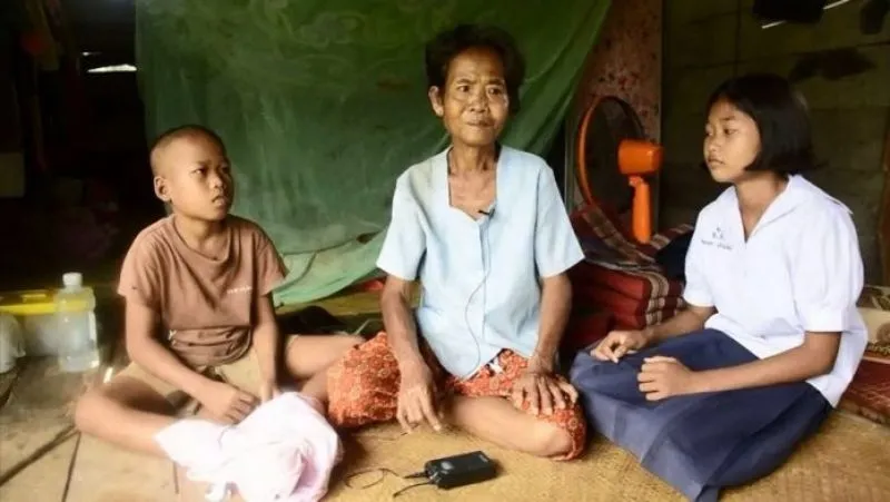 เมื่อตนล้มป่วยด้วยโรคดังกล่าว ก็ไม่สามารถทำงานได้ หลานทั้ง 2 คนจึงต้องเป็นหัวเรี่ยวหัวแรงในการหาเงินมาใช้จ่ายในการไปโรงเรียนขยายโอกาสประจำหมู่บ้านจันลา โดยวันที่หยุดเรียนเด็กทั้งคู่ จะไปรับจ้างแบกของในหมู่บ้านได้วันละ 20 บาท หรือเก็บลูกต้นยางที่เป็นผลไม้ป่ามาขายกระสอบละ 140 บาท หรือรับจ้างเก็บข้าวโพดตามฤดูกาล รวมทั้งบางวันก็ไม่ได้ไปโรงเรียน หากมีคนมาว่าจ้างให้ไปทำงาน เพราะต้องหาเงินใช้จ่ายเลี้ยงดูยายและเก็บไว้เป็นเงินไปโรงเรียนในแต่ละอาทิตย์