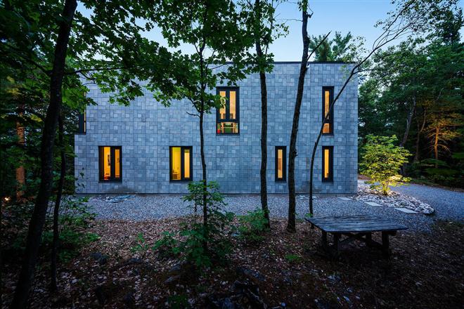 แบบบ้านโมเดิร์นออกแบบเรียบง่าย แต่แฝงด้วยไอเดียที่ไม่ธรรมดา สำหรับคนที่ชอบอะไรง่ายๆ แต่สวยลงตัว กับแบบบ้านทรงกล่องหลังนี้ ด้วยการออกแบบภายนอกให้เป็นทรงสี่เหลี่ยมธรรมดา แต่เสริมความไม่ธรรมดาด้วยลายคอนกรีต สลับการใช้กระจก และสวนหย่อมสมัยใหม่ ตกแต่งด้วยไม้ยืนต้นเสริมความร่มรื่นเล็กน้อย