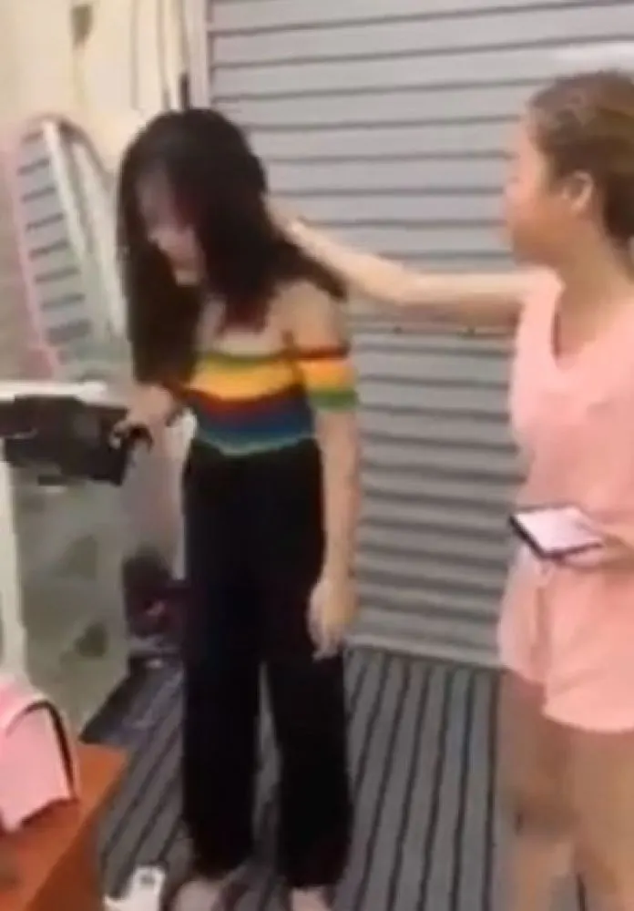 หลังจากนั้นหญิงสาวก็เปิดฉากเข้าไปจัดการโดยบอกให้ทั้งคู่ใส่เสื้อผ้าจากนั้นเธอก็จับตัวลูกจ้างสาวออกมาจิกหัวตบตีและหยิบปัตตาเลี่ยนมากล้อนผมลูกจ้างสาวจากผมดำยาวสวยงามกลายเป็นสั้นติดศีรษะ