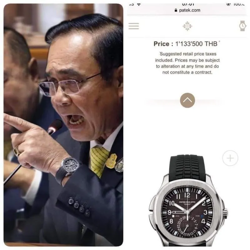 ทั้งนี้ เมื่อสืบเสาะแล้ว พบว่า นาฬิาดังกล่าว คือนาฬิกา ยี่ห้อ Patek Philippe รุ่น Aquanaut Travel Time 5164A-001 ซึ่งมีราคาประมาณ 1,133,500 บาท และบางบางแห่ง ก็ขายกันอยู่ที่ 1,256,189 บาท