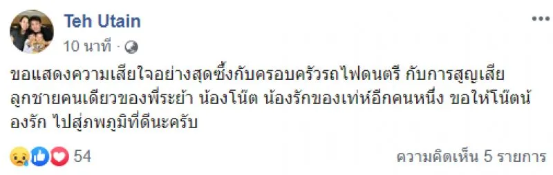 น้ำตาไหล เท่ห์ อุเทน โพสต์อาลัยหลังทราบน้องรักเสียชีวิต