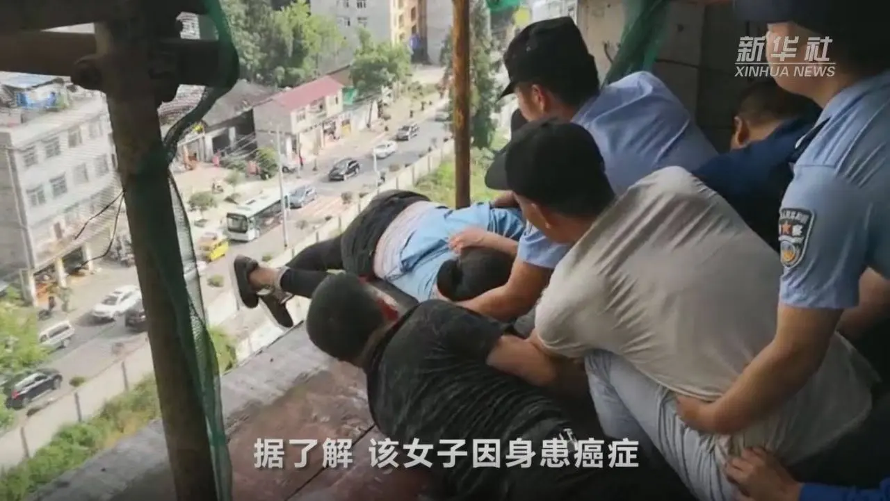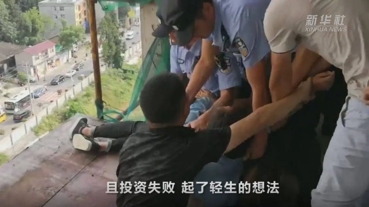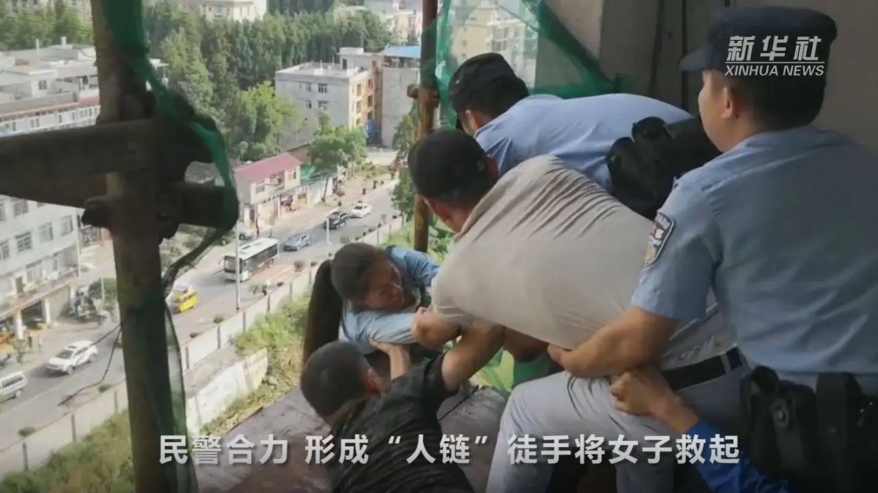 หลังได้รับแจ้งว่า หญิงจีนคนหนึ่งพยายามจะกระโดดตึกเพื่อฆ่าตัวตาย บนอาคารสูงที่อยู่ในระหว่างการก่อสร้างแห่งหนึ่งในเมืองลี่ชวน มณฑลหูเป่ย เจ้าหน้าที่ตำรวจจึงรุดไปยังจุดเกิดเหตุเพื่อโน้มน้าวให้เธอล้มเลิกความคิด แต่ในระหว่างที่ตำรวจพยายามเกลี้ยกล่อมอยู่นั้น จู่ๆ หญิงสาวซึ่งยืนอยู่บริเวณริมตึกที่ไม่มีทั้งราวหรือรั้วป้องกันความปลอดภัย ก็เกิดหมดเรี่ยวแรงจนเกือบจะพลัดตกจากขอบตึกลงไปยังเบื้องล่าง โชคดีที่เธอคว้าตาข่ายไว้ได้ทัน