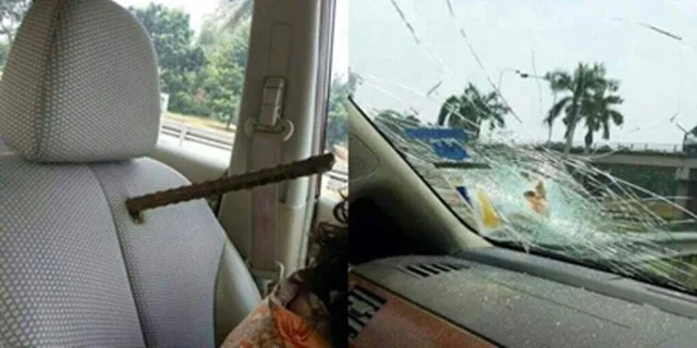 อุทาหรณ์! สำหรับผู้ที่ชอบขับขี่จี้ท้าย เหล็กแหลมทะลุกระจก เคราะห์ดีไม่มีใครได้รับบาดเจ็บ