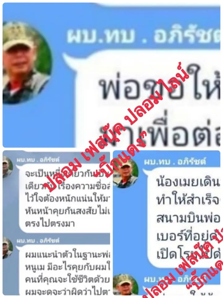 ทาง Wassana Nanuam โพสต์ไว้ว่า...พบ แอบอ้าง เป็นลูกสาว ผบ.ทบ. ปลอม เฟสบุ้ค ปลอม ไลน์ “บิ๊กแดง” หลอกหนุ่ม .... ใช้ภาพโปรไฟล์ ประหนึ่งนางฟ้า คบหาเหยื่อหนุ่ม ในเฟสบุ้ค ก่อนติดต่อ พูดคุย แล้วดึงเข้ากลุ่ม ....อ้างชื่อ“ผบ.ทบ.อภิรัชต์” คุยกับ ลูกสาว ให้เหยื่อหลงเชื่อ... อ้าง มีลูกสาว อีก 2 คน “จ๊ะเอ๋-เมย” นอกเหนือจาก “พี่พลุ-พี่เพลิน” .....เหยื่อหนุ่ม หลายราย โดนหลอก สูญเงินเป็นล้าน แจ้ง เพจดัง “บิ๊กเกรียน” ช่วยจัดการ ?! ....เผย “บิ๊กแดง” ตัวจริง และครอบครัว รู้เรื่องแล้ว แม้จะ ฮา เพราะคิดไม่ถึง ว่าจะมีเรื่องแบบนี้ ที่มีการแอบอ้างว่า มีลูกสาว อีก2 คน ทั้งๆที่ สังคมทั่วไป ก็รู้ว่า มีแค่”ผู้กองพลุ” กับ”หมอเพลิน” เท่านั้น แต่ ก็ต้องให้ กฎหมาย จัดการ