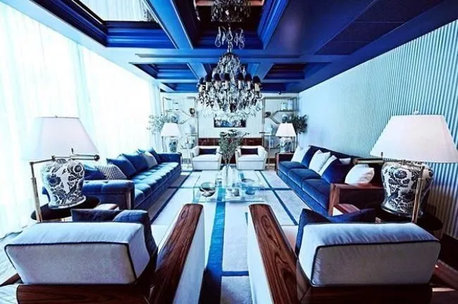 สร้างบรรยากาศทันสมัยและดูแพงในเวลาเดียวกัน ส่วนผนังห้องกรุด้วยกระจกเงา ทำให้ห้องดูกว้าง และสว่างขึ้น พร้อมแชนเดอเลียร์สุดเก๋ ทั้งในห้องครัวและห้องนั่งเล่น