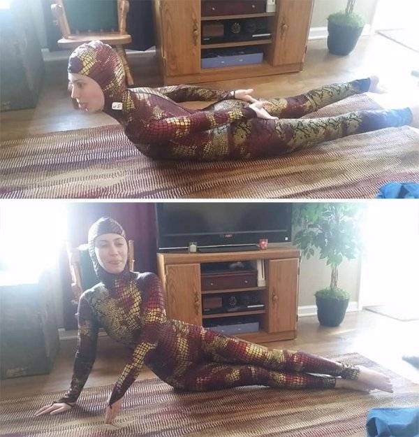 ชุดเล่นโยคะลายหนังงูใส่ตั้งแต่หัวจรดเท้า