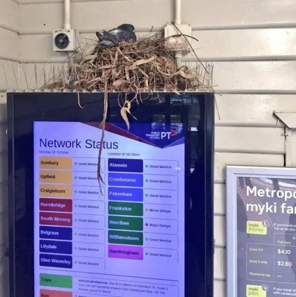 แม้บนจอภาพนี้จะติดอุปกรณ์ป้องกันนกเอาไว้แล้ว แต่มันก็ช่วยอะไรไม่ได้อย่างที่เห็น