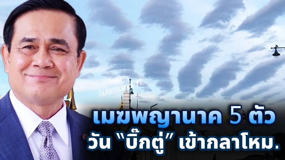 แต่เช้าตรู่วันนั้น บนหากฟ้า มีเมฆลักษณะแปลกตา ปรากฏเหนือท้องฟ้าที่ทหารในกลาโหม กล่าวขานกันว่า เป็น เมฆรูปพญานาค 5 ตัว ที่แผ่เศียร ด้านข้าง ปกคลุม อยู่แม้แต่ ทีมงานของ บิ๊กตู่ ก็ยัง อัศจรรย์ใจ ที่เห็น เมฆพญานาค ในเวลานั้นบิ๊กตู่ เกิดวันเสาร์ และ เติมน้ำมันตะเกียง พระประจำวันเกิด ปางนาคปรก ที่ศาลหลักเมือง