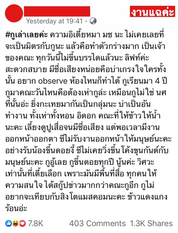 7- หลังข่าวนี้กระจายออกไป ก็มีคนมาแชร์ประสบการณ์คอนเฟิร์มว่าเตี้ยหยิ่งจริง อุตส่าห์เดินทางจากกรุงเทพฯ ไปหาถึง มช. แต่ไม่มีขนมไปด้วย เตี้ยเห็นมามือเปล่า เตี้ยวิ่งหนีไปเลยจ้าาาาาา (มาตั้งไกล ไหนของฝาก)