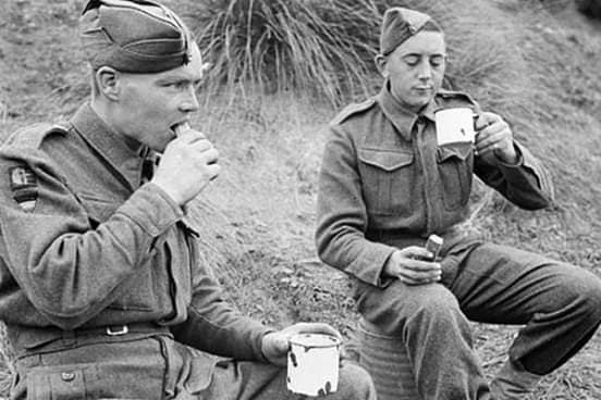 "เมื่อคุณเปียก, หนาว และ สิ้นหวัง แต่คุณอยากจะฮึกสู้อีกครั้งแม้ล้าไกล้ตายเต็มทีจากความเหนื่อยอ่อน...คุณอาจจะเปรอะเปื้อนไปด้วยดินโคลน ตัวเหม็นโฉ่ จากการไม่ได้อาบน้ำมาหลายวันหรือหลายสัปดาห์ อาจจะทั้งหนาว ทั้งเหนื่อยหมดแรงเต็มที..แต่ชาแก้วร้อนๆแก้วนั้น เหมือนจะช่วยขจัดความรู้สึกเหล่านั้นไปได้...เพื่อทหารเริ่มเล่นมุขในวงดื่มชา ขวัญและกำลังใจของเราก็เริ่มมา ช่างเป็นการกระทำที่เรียบง่ายเหลือเกิน เพียงแค่เราแบ่งปันชาในเหยือกร่วมกันกับสหายศึก ซึ่งก็สภาพย่ำแย่พอๆกับเรา....มันช่างเยี่ยมเหลือเกิน"