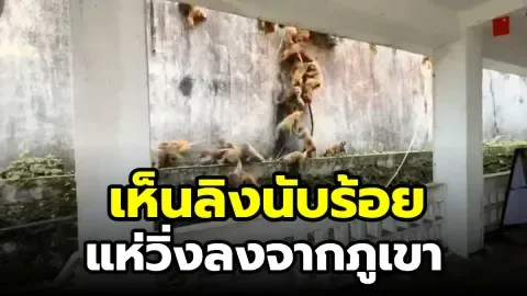 ชาวบ้านงงงวย หลังเห็นลิงนับร้อย แห่วิ่งลงจากภูเขา