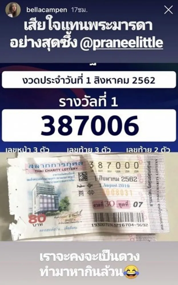 เบลล่า ให้รางวัลปลอบใจแม่ หลังหวิดถูกรางวัลที่1 ผิดแค่ตัวเดียว