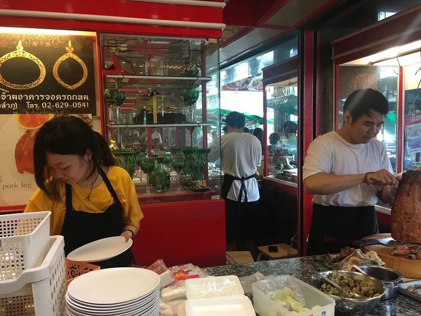 ร้านหมูกรอบตู้ทอง แห่งนี้ อยู่ใกล้กับห้างสรรพสินค้าตั้งฮั่วเส็ง ถนนจักรพงษ์ แขวงตลาดยอด เขตพระนคร กรุงเทพฯ เดิมคือห้างทอง แต่เนื่องจากเจ้าของอายุเยอะแล้วจึงเลิกทำ ก็เลยให้หลานสาวนำร้านทองที่มีอยู่เดิม เปลี่ยนเป็นร้านขายหมูกรอบตั้งแต่ต้นปี 2561 เพราะหลานสาวชอบทำอาหาร แต่ทองคำก็ยังขายอยู่ แต่เป็นอีกร้านหนึ่ง คือ ห้างทองเอ็งฮงฮั้ว ตรงข้ามอาคารจอดรถ กทม. บางลำภู