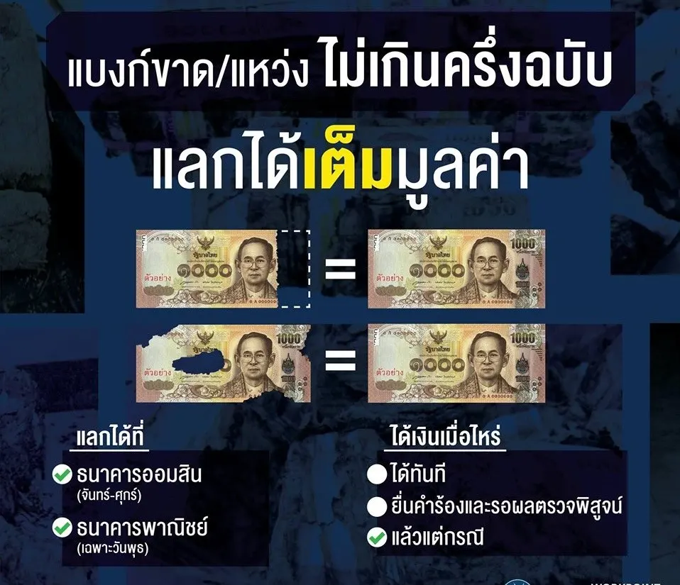 แบงก์ขาด-ชำรุด แลกเป็นเงินใหม่ได้ ตามหลักเกณฑ์นี้