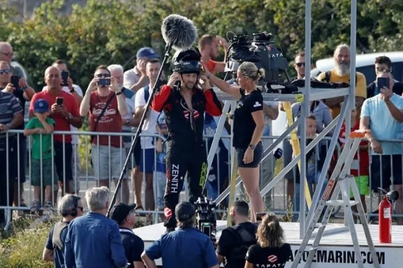 นายซาปาตาทดสอบการเหาะครั้งนี้เป็นครั้งที่สอง หลังจากรอบแรกเมื่อวันที่ 25 ก.ค. วาระฉลอง 110 ปี หลุยส์ เบลริโอต์ บินข้ามช่องแคบนี้ด้วยเครื่องบิน นายซาปาตาไปไม่ถึงจุดหมาย ตกลงในน้ำเสียก่อน เพราะเติมพลังงานไม่สำเร็จ ส่วนการท้าทายครั้งใหม่นี้ เริ่มเวลา 08.17 น. ใช้เวลา 22 นาที นายซาปาตาเตรียมตัวมาพร้อมกว่าครั้งก่อน จึงข้ามแดนระยะทาง 35 กิโลเมตร ด้วยความเร็ว 160-170 กิโลเมตรต่อชั่วโมง และสูงจากผิวน้ำ 15-20 เมตร โดยมีเฮลิคอปเตอร์ 3 ลำ ตามประกบ และเรือคุ้มกันด้านล่างคอยจับตาอยู่ กรณีที่เกิดปัญหาขึ้น
