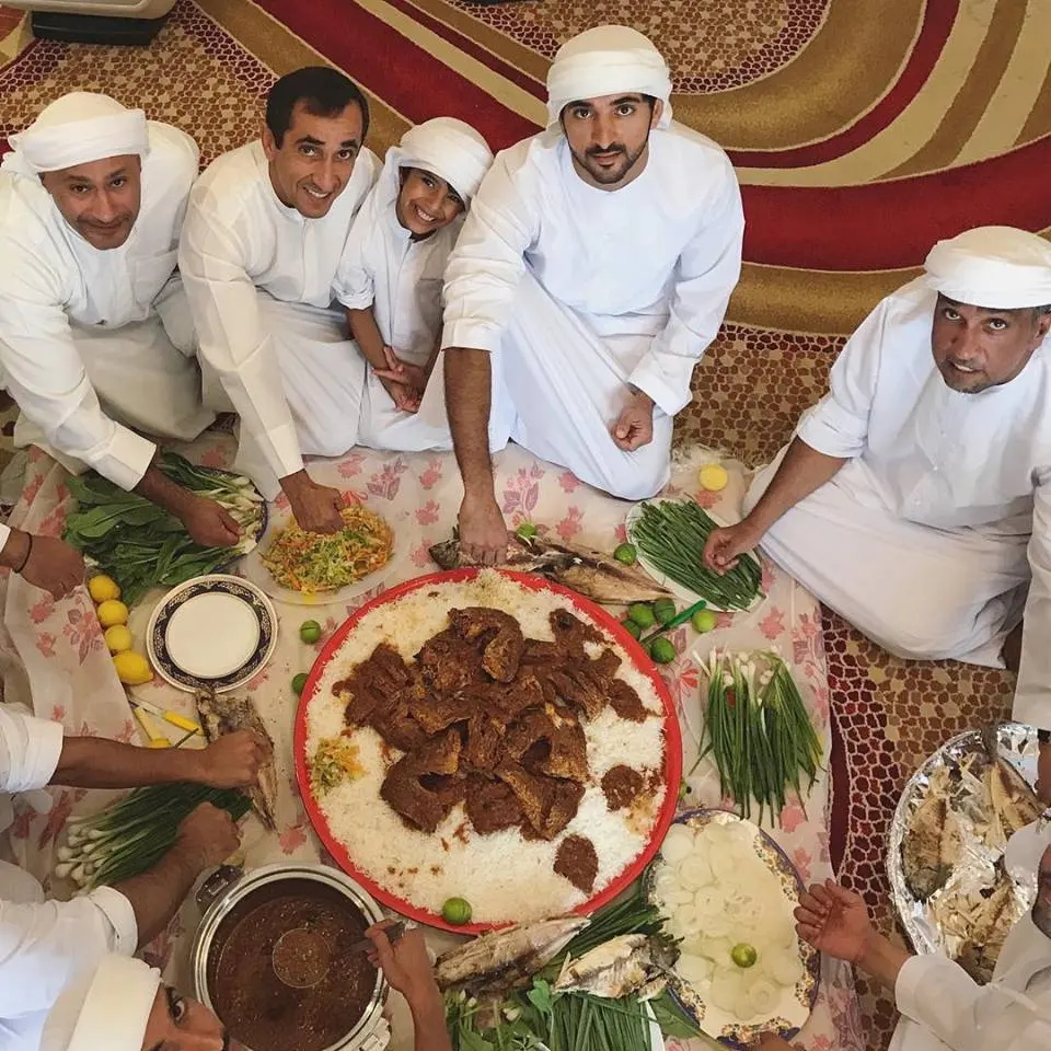 พระกระยาหารแบบดูไบ ตามหลักของชาวมุสลิม ทั้งการนั่งพื้น เพื่อให้กระเพาะอิ่มแต่พอดี หรือการใช้มือขวารับประทานก็ต้องล้างผ่านน้ำสะอาด