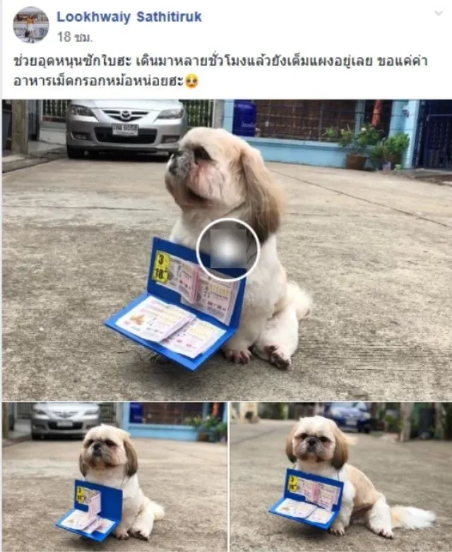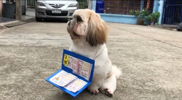 เป็นภาพที่สร้างรอยยิ้ม ได้เป็นอย่างมากน้องหมาแสนรู้เจ้าของซื้อแผงล็อตเตอรี่เล็กๆให้น้องหมาทำทีทำท่าว่ากำลังขาย เมื่อภาพถูกแชร์ต่อๆกันออกไปก็สร้างเสียงหัวเราะได้เป็นอย่างดี แถมยังเอ็นดูในความน่ารักของน้องหมาอีกด้วย เมื่อวันที่ 5 สิงหาคม 62 มีผู้ใช้เฟสบุ๊ครายหนึ่งใช้ชื่อว่า Lookhwaiy Sathitiruk ได้โพสต์คลิปวีดีโอพร้อมภาพระบุข้อความว่า ช่วยอุดหนุนซักใบฮะ เดินมาหลายชั่วโมงแล้วยังเต็มแผงอยู่เลย ขอแค่ค่าอาหารเม็ดกรอกหม้อหน่อยฮะ