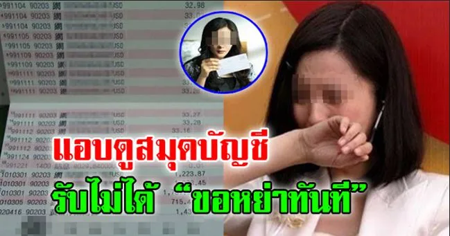 เรื่องนี้เรามารู้เอาตอนที่เรากลับไปเยี่ยมพ่อแม่ที่บ้าน เราโกรธมากจนแทบจะขอหย่า พอครั้งนี้ หลังสามีเลื่อนตำแหน่งได้ครึ่งปี เรารู้สึกว่าเงินเดือนปัจจุบันของสามีบวกกับเงินเก็บน่าจะพอดาวน์บ้านได้แล้ว เราก็เลยให้สามีเอาเงินออกมาดู เพราะเราสองคนต่างคนต่างเก็บ แต่สามีก็อ้ำๆอึ้งๆ บอกว่าไม่อยากซื้อตอนนี้ รถก็บอกว่าอย่าเพิ่งซื้อ เราก็เลยรู้สึกแปลกๆ เพราะงั้นวันนึงตอนสามีไม่อยู่บ้าน เราก็เลยหาสมุดบัญชีเขาจนเจอ พอเปิดออกดูก็เห็นว่ามีไม่กี่หมื่น