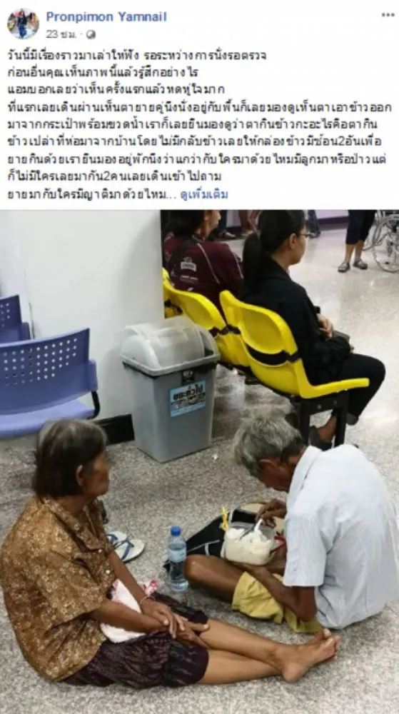 สองตายายไปรพ. รอคิวตรวจ นั่งพื้นกินข้าวเปล่าห่อจากบ้าน เงินใช้จ่ายก็ต้องยืมมา ล่าสุดมีข่าวดี