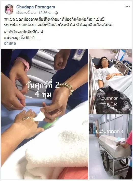 รพ.ชล บอกน้องอาจเสียชีวิตด้วยยาที่น้องกินติดต่อกันมาเปนปี
