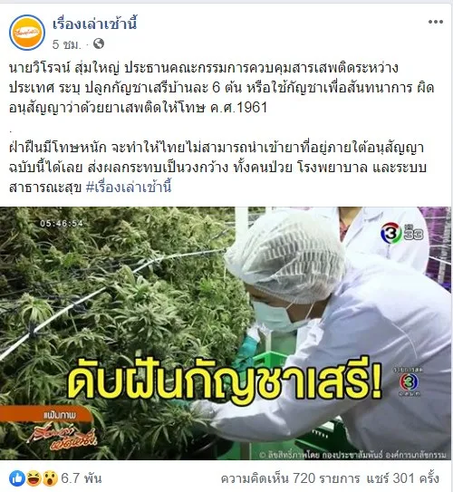 กัญชาเสรีไปไม่ถึงฝัน ชี้ ผิดอนุสัญญาว่าด้วยยาเสพติดให้โทษ ค.ศ.1961 ฝ่าฝืนมีโทษหนัก