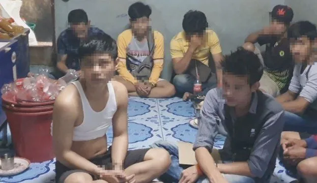 เมื่อตรวจสอบในห้องพบว่า ประตูหน้าห้องถูกคล้องด้วยกุญแจล็อกปิดไว้ แต่ภายในมีเสียงคนอยู่หลายคน จึงได้คีมมาตัดกุญแจออก พบกลุ่มชาย ในห้องรวม 22 คน แบ่งเป็นผู้ที่มาเ ส w E า 21 คน เป็นคนไทย 6 คน แรงงานข้ามชาติ 15 คน และผู้ผลิตน้ำท่อมอีก 1 คน